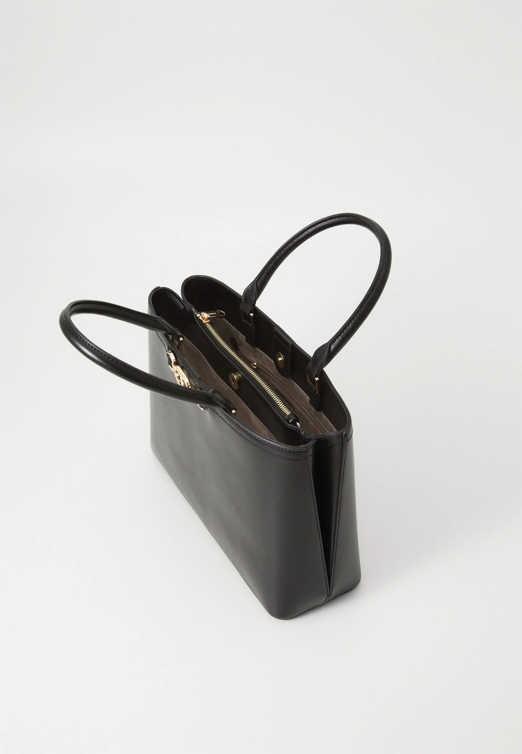 - Borsa in ecopelle con logo Oval T in metallo. Due manici alti 15 cm, manico regolabile e rimovibile. Pulsanti magnetici.
