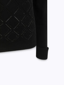 UPGRADE SCINTILLANTE PER LA MAGLIA A LUPETTO IN VISCOSA STRETCH CON LAVORAZIONE A EFFETTO PUNZONATO CHE CREA UN MOTIVO A ROMBI ILLUMINATO DA STRASS TERMOADESIVI. HA MANICHE LUNGHE CON POLSO ALTO E SPACCHETTI, LINEA FITTED. IDEALE PER ELEVARE I TUOI LOOK DAILY IN UN ATTIMO.