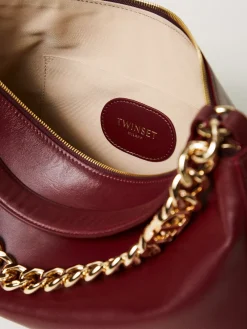Borsa hobo ‘Liliane’ made in Italy, realizzata in pelle di vitello liscio pieno fiore con trattamento anti goccia e antigraffio. Il corpo è realizzato a colonna, con logo impresso a caldo, e foderato con un twill in misto cotone. Ha due manici staccabili, da indossare simultaneamente o separati per diverse interpretazioni di styling: uno in pelle sagomato e imbottito, l’altro è una catena in lega leggera in galvanica oro con l’Oval T inserito tra le maglie.