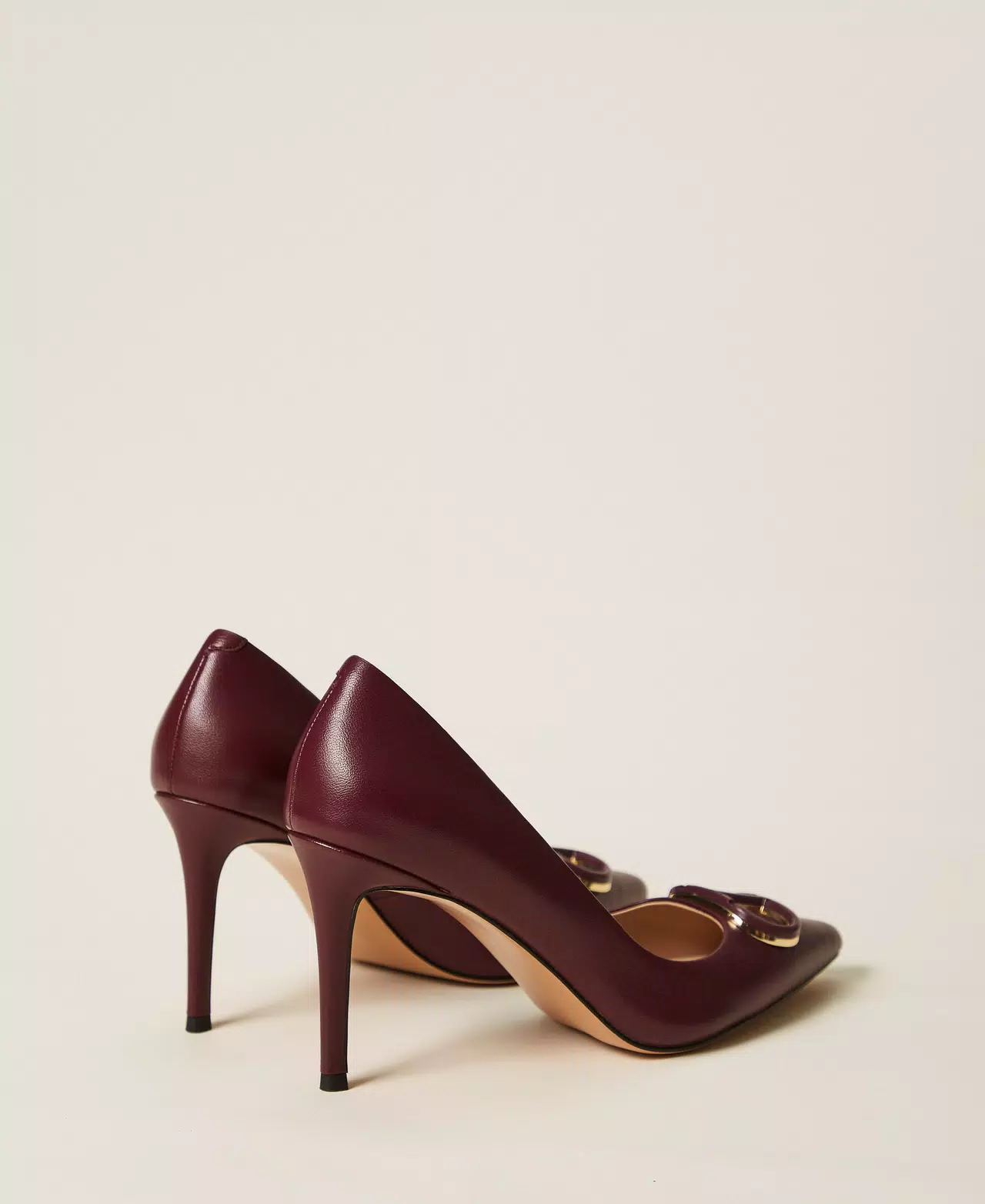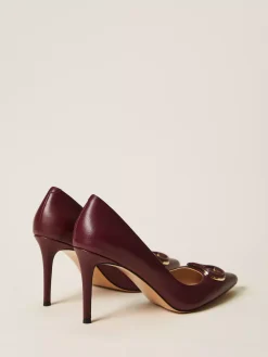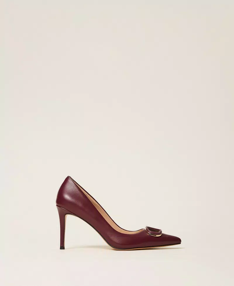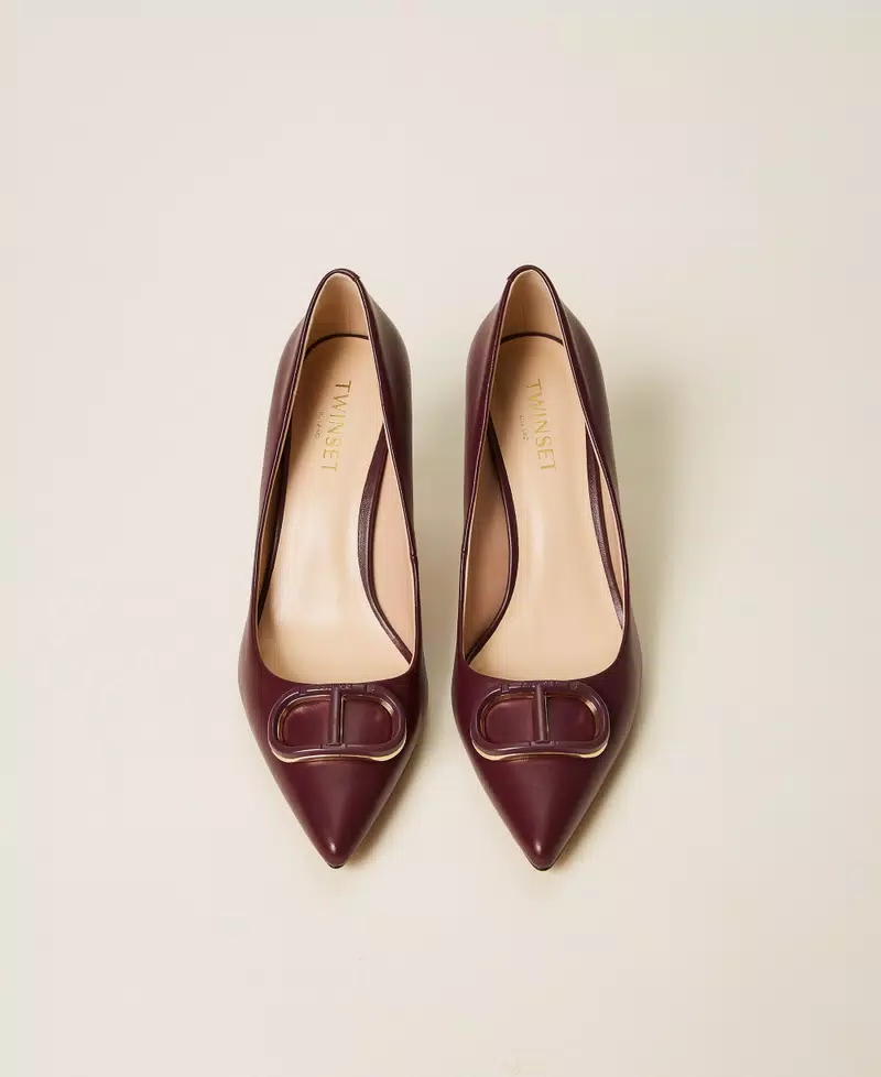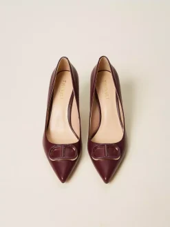 Décolleté in pelle con Oval T smaltato in tono, punta sfilata, tacco a stiletto e fondo in tunit.