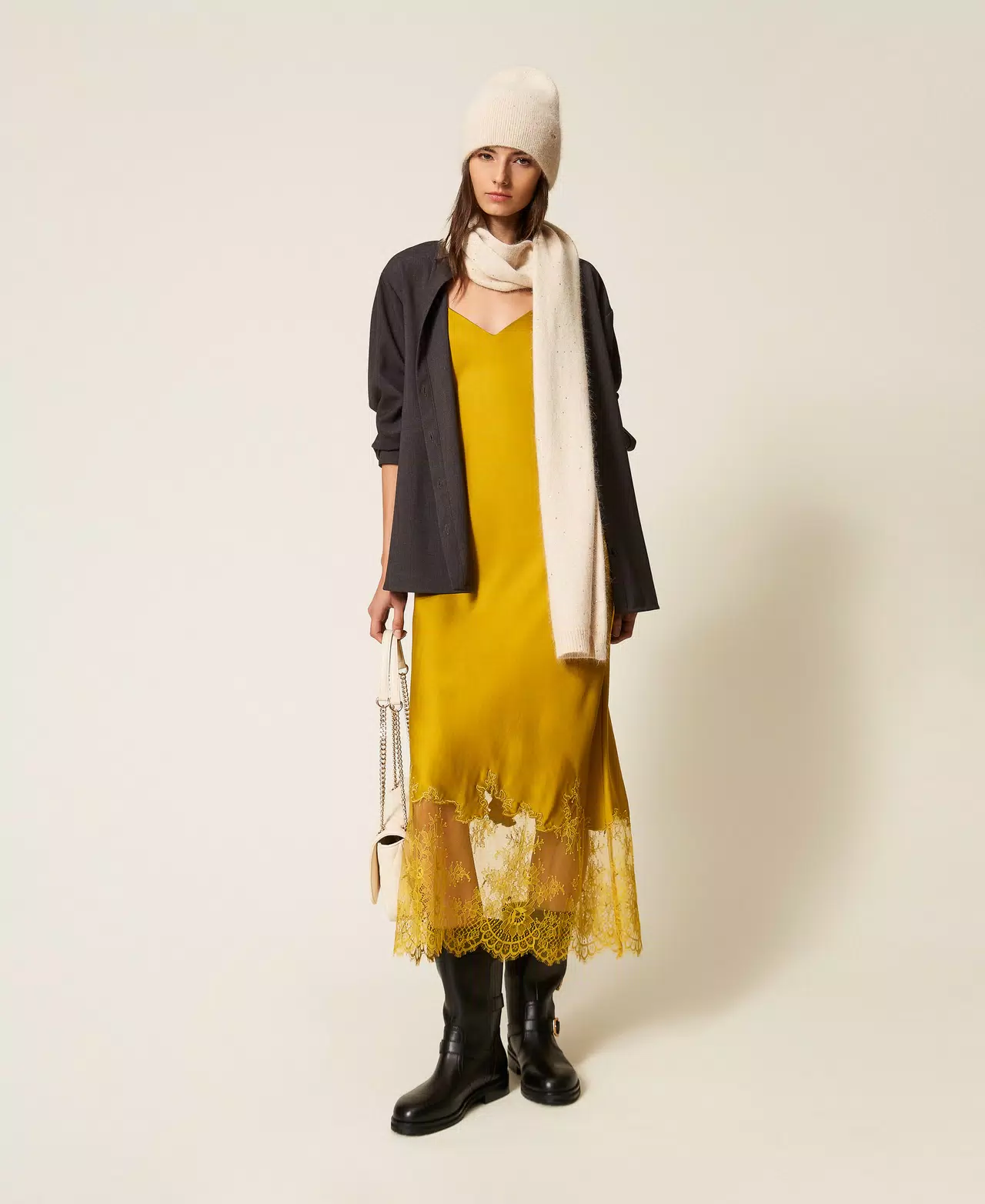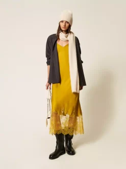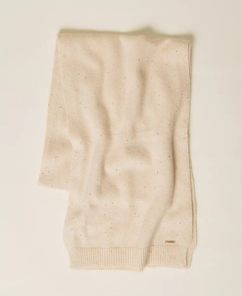 Sciarpa in maglia di misto alpaca con lavorazione rasata e filo di paillettes.