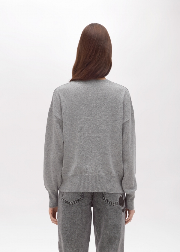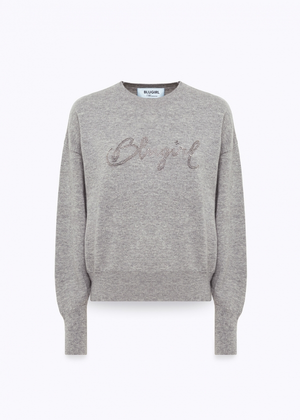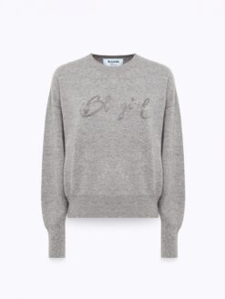ESSENTIAL PREGIATO DEL GUARDAROBA: MAGLIA IN LANA E CACHEMIRE, DALLA LINEA MORBIDA. HA COLLO TONDO, MANICHE LUNGHE CON SPALLE SCESE, PROFILI RIFINITI A COSTINE, LOGO LETTERING CON CRISTALLI TERMOADESIVI. EASY KNITWEAR DA INTERPRETARE COME VUOI.