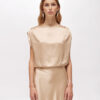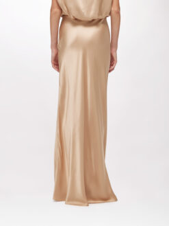 EFFETTO SCENOGRAFICO PER LA GONNA LUNGA IN RASO DI VISCOSA CHE ABBRACCIA LA SILHOUETTE CON UNA LINEA DRITTA ELEGANTE. LA PUOI ABBINARE ALLA BLUSA IN COORDINATO PER UN’OCCASIONE SPECIALE.