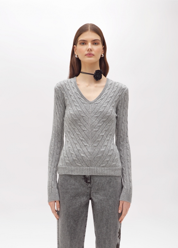 LAVORAZIONE A TRECCE DIAGONALI CHEVRON CHE DEFINISCONO LA SILHOUETTE PER LA MAGLIA IN LANA E CACHEMIRE. HA SCOLLO A V, MANICHE LUNGHE E RETRO CON LAVORAZIONE A CONTRASTO, LINEA FITTED. FILATO PREGIATO E ATTITUDINE VERSATILE PER ACCOMPAGNARTI IN UNA MIRIADE DI OCCASIONI.