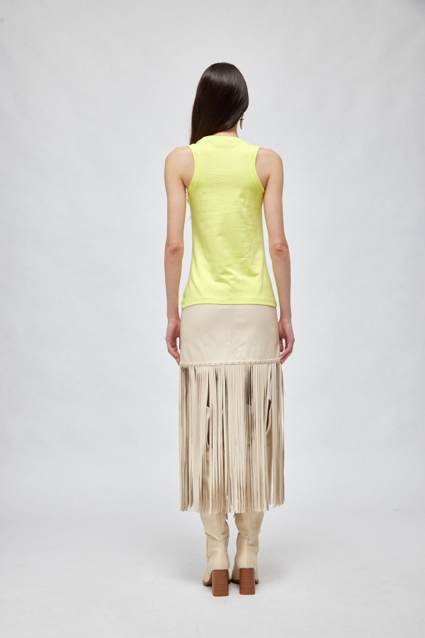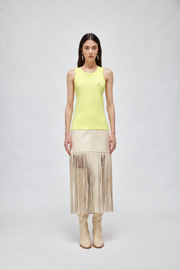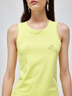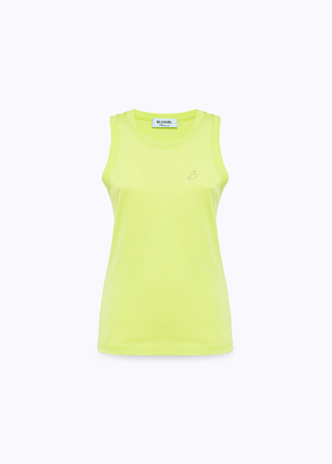 RENDI ATTUALE IL TUO OUTFIT CON LA CANOTTA IN JERSEY DI COTONE CON LOGO DI CRISTALLI TONO SU TONO. HA COLLO TONDO E LINEA FITTED. IL COMPLETAMENTO PERFETTO DI UNA MIRIADE DI LOOK DI STAGIONE.