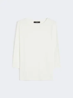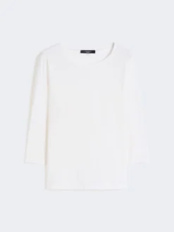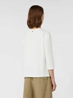 T-shirt in morbido jersey di cotone stretch organico, caratterizzata da scollo a barchetta e maniche 3/4. Modello dalla linea dritta, personalizzato con logo a farfalla stampato sul retro del collo. Il tessuto principale di questo capo contiene almeno il 50% di fibra di cotone coltivata secondo i principi dell’agricoltura biologica.