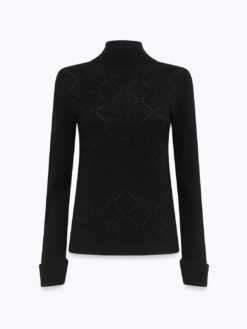 UPGRADE SCINTILLANTE PER LA MAGLIA A LUPETTO IN VISCOSA STRETCH CON LAVORAZIONE A EFFETTO PUNZONATO CHE CREA UN MOTIVO A ROMBI ILLUMINATO DA STRASS TERMOADESIVI. HA MANICHE LUNGHE CON POLSO ALTO E SPACCHETTI, LINEA FITTED. IDEALE PER ELEVARE I TUOI LOOK DAILY IN UN ATTIMO.