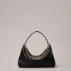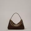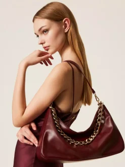 Borsa hobo ‘Liliane’ made in Italy, realizzata in pelle di vitello liscio pieno fiore con trattamento anti goccia e antigraffio. Il corpo è realizzato a colonna, con logo impresso a caldo, e foderato con un twill in misto cotone. Ha due manici staccabili, da indossare simultaneamente o separati per diverse interpretazioni di styling: uno in pelle sagomato e imbottito, l’altro è una catena in lega leggera in galvanica oro con l’Oval T inserito tra le maglie.